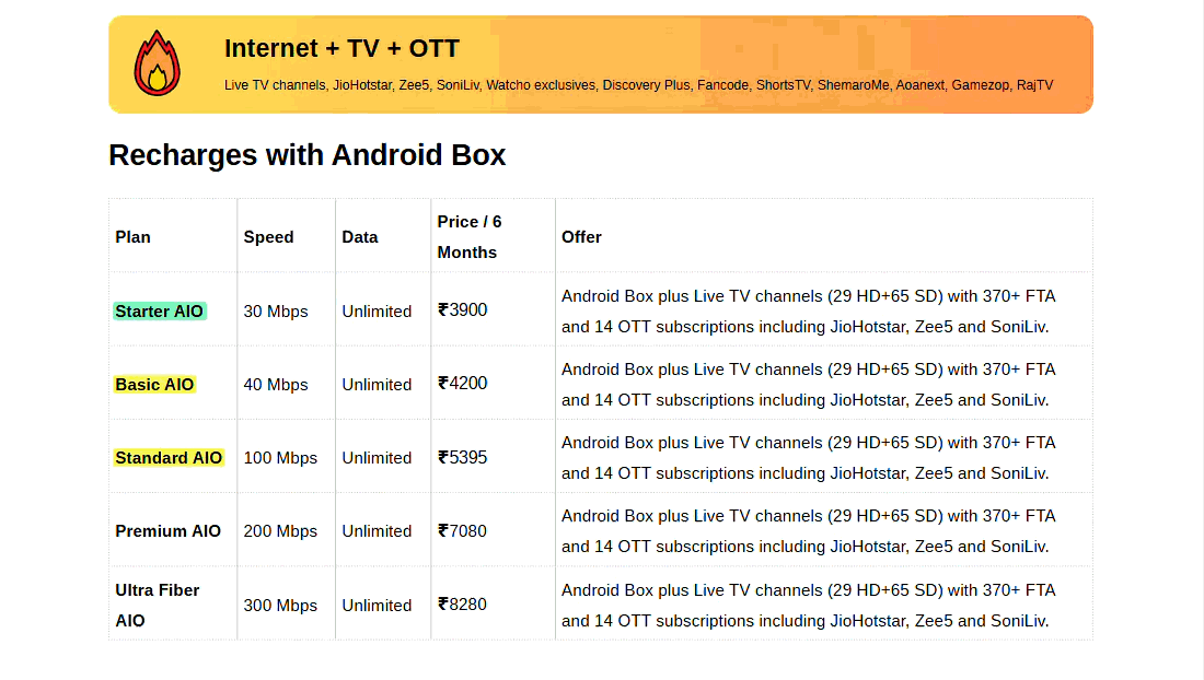 ₹4200- 180 days (With android box.).