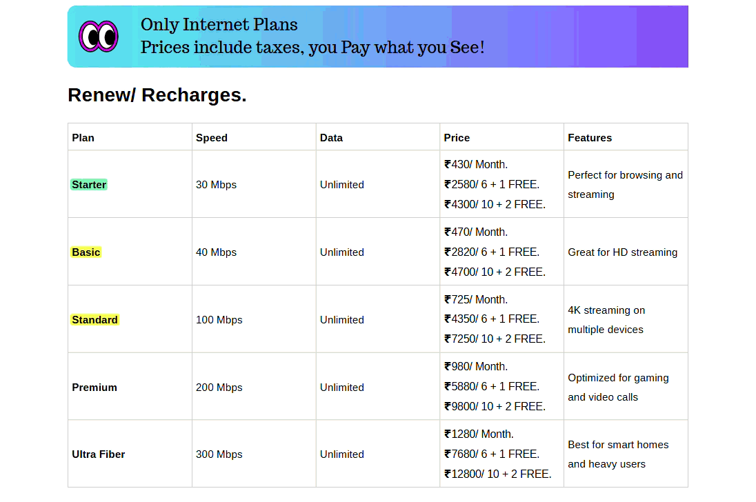 300 Mbps - ₹ 1280/ mo.