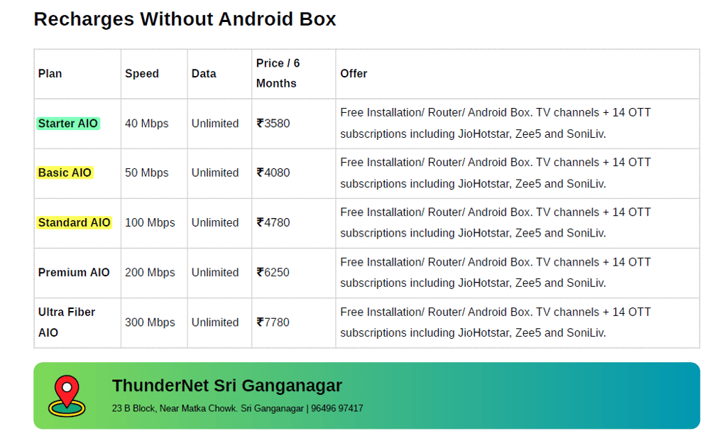 Providing home broadband, leased lines, IPTV, and bundled OTT subscriptions since 2020 in Sri Ganganagar.
